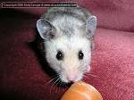 Description : Cinnamon with carrot Image Reference No. : AA-301204HAMSTERS-01 Date photo taken : 30th December 2004 Other Information : This is Cinnamon the Hamster (male), and is the first photo I took of this young hamster, A very nervous little fellow. |