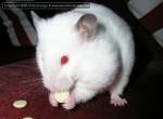 Description : Nibbler with yogurt treat Image Reference No. : AA-141204HAMSTERS-03 Date photo taken : 14th December 2004 Other Information : This is Nibbler the Hamster (female) eating a yogurt flavoured 'Hamster treat' button. |