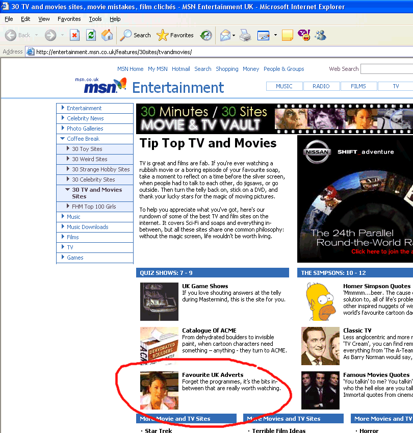 TV Adverts section of my website launched. With 12 adverts encoded in Real Player format. |